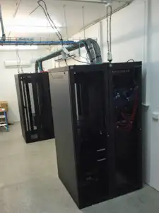 Emerson 20 KVA UPS. Full load for 15 Minutes. 5KW for 45 Min. Includes equipment and one 8KW AC system. Bypass switch for isolation and UPS Testing. Each Cabinet is fed with separately fused 15A feed from normal mains power and UPS power. The Fuse has ELD.